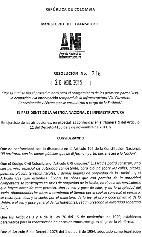 Resolución 716 de 2015 – ANI